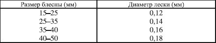 Таблица 11. Соотношение размера блесны и диаметра лески