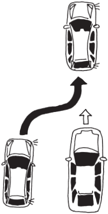 Рано или поздно с этим надо заканчивать, и это как раз тот случай. Попробуйте перестроиться не на торможении, а на ускорении (рис. 34). Нажимайте на газ и спокойно занимайте правый ряд перед автомобилем справа.