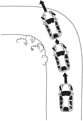 Если вы хотите прекратить занос или уменьшить его угол, резко поверните руль в сторону заноса и тут же верните в положение прямо. Главное – не дожидаться ответной реакции автомобиля, иначе вы упустите время, и он пойдет враскачку, стремясь развернуться вокруг своей оси (рис. 47). Если одного движения рулем мало, тут же повторите его, но уже с меньшим углом. Зимой особенно актуально правило: чтобы не допустить нежелательное скольжение, необходимы плавные движения рулем, но если оно началось – действия баранкой должны быть решительными.