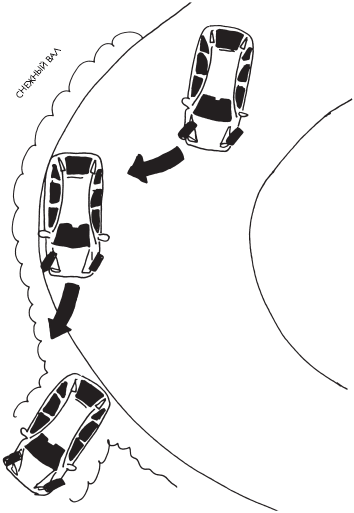 Правда, при попадании в повороте на гололед заднеприводной автомобиль может также отреагировать на движение рулем сносом передней оси. В этом случае вписаться в поворот можно только одним способом: перевести снос передней оси в занос задней. На большой скорости это достигается резким сбросом газа при условии, что передние колеса уже направлены в сторону поворота, а скользкое покрытие хоть как-то держит автомобиль. На небольшой скорости сорвать заднюю ось в занос можно ручным тормозом или кратковременным нажатием на педаль газа, которое вызовет пробуксовку задних колес.