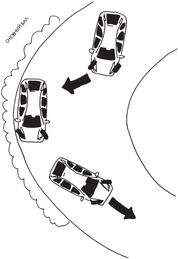Хороший снежный вал можно использовать как дополнительную опору в стабилизации автомобиля. Здесь главное – успеть непосредственно перед касанием вала поставить колеса прямо или чуть-чуть повернуть в сторону поворота.