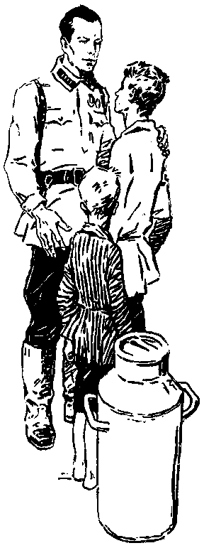 Мальчик шел по мостовой, спотыкаясь, боязливо озирался по сторонам. Стали попадаться редкие прохожие. Они останавливались и долго провожали взглядом повозку с бидоном. Мальчику казалось, что каждый встречный обо всем догадывается, каждый видит бидон насквозь и спешит в полицию, чтобы донести… Он не понимал, как Сережа мог так спокойно сидеть на облучке, лениво пошевеливая вожжами и изредка покрикивая на лошадь. Вот Сережа придержал лошадь, подозвал брата:
