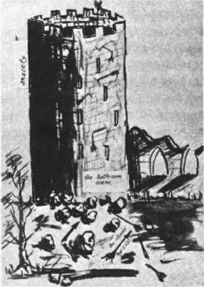 Стены башни представляют собой ее защитные механизмы, препятствующие идентификации травмировавшего события. Как указывает надпись, башня построена из тревоги, событие в ванной заключено внутри башни, а стрелы представляют атаки ЛСД.