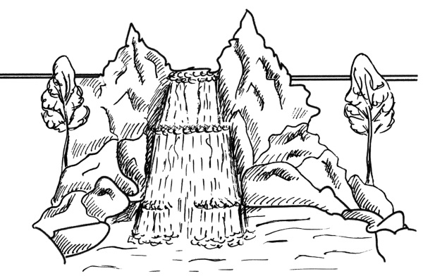 Склон можно оформить натуральным камнем, устроить водопад или каскад.
