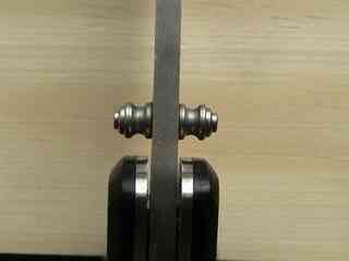 Сама рукоять сквозного типа и составлена из двух стальных плашек 1,5 мм. толщины, скрепленных между собой четырьмя мощными стальными бонками. Первая из них играет роль упора клинка в раскрытом состоянии.