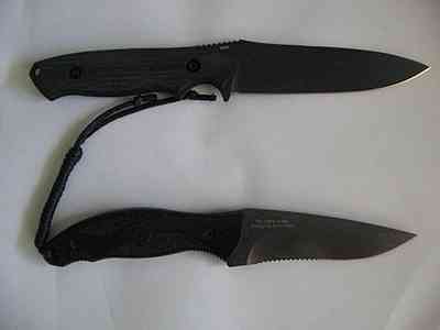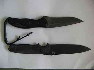 У Нимравуса это дроппойнт «для форсу бандитского» названный модифицированным танто. Клинок широкий, с прямыми спусками и с псевдофальшлезвием на обухе. Сталь М2. Покрытие тефлоновое, многие отзывались о нем не очень хорошо.