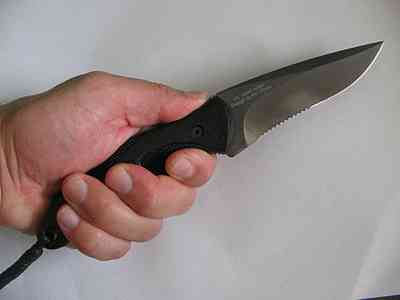 У «вертиги» тоже дроппойнт, имеется фальшлезвие на обухе, спуски широкие. Покрытие ti— ni достаточно стойкое, правда местами тоже начинает сходить. Сталь AUS-8A ведет себя очень достойно… Ложка дегтя— совершенно ненужный серрейтор на задней части клинка, который в принципе, не мешает резу…