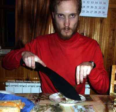 — Использование в мачете при употреблении пищи. Кстати, не так плохо, как может показаться, но в итоге мне предложили либо идти обедать куда-нибудь в Непал, либо использовать ножи поменьше. Выбрал второе, хотя в Непал, конечно, хочется.