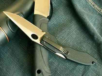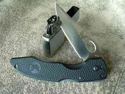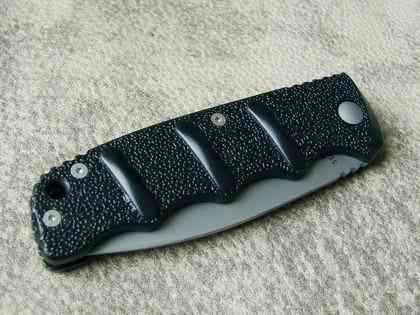Очень и очень прилично ведет себя сталь 440C, довольно легко точится в бритву и долго сохраняет РК. Нарезание продуктов происходит легко и непринужденно, несмотря на спуски только на половину ширины клинка — в продуктах не вязнет, сказывается относительно тонкая РК и правильная финишная обработка — не прилипает, всегда можно сделать потяг. Пластиковая рукоять покрыта приятными пупырышками, предотвращающими скольжение. Есть отверстие для темляка, но если носить нож на клипсе, оно, по большому счету, не очень-то нужно — клипса позволяет носить нож только клинком вниз, соответственно темляк надо запихивать в карман первым и доставать за него нож невозможно.