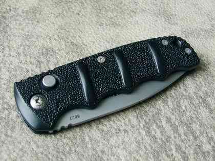 Подпальцевые выемки и выступы на рукояти очень помогают контролировать нож, как в перчатке, так и без нее, хотя выступы правильнее, по-моему, было бы разместить по-другому. Но это дань дизайну оригинального штык-ножа для АК-74, по мотивам которого Дитмар Поль и спроектировал этот фолдер.
