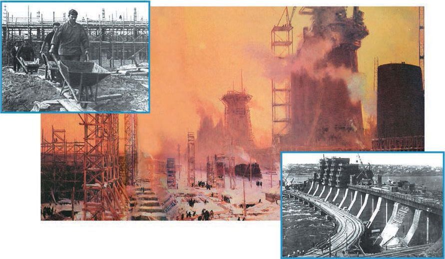 В эти годы были построены крупные тракторные заводы в Сталинграде (Волгограде) и Челябинске. В Москве и Нижнем Новгороде появились автомобильные заводы, в Западной Сибири и на Южном Урале строились металлургические комбинаты. Под Ленинградом (Санкт-Петербургом) была возведена мощная гидроэлектростанция на реке Волхов.