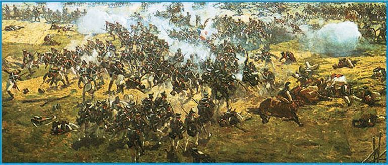 26 августа 1812 года недалеко от Москвы, у деревни Бородино, русская армия под командованием Михаила Илларионовича Кутузова дала сражение французам. Весь день гремела пушечная канонада над полем, атаки кавалерии сменяли одна другую, всё новые и новые пехотные полки шли в атаку. Обе армии несли огромные потери, но победа не склонялась ни на одну, ни на другую сторону. К концу дня армии остались на своих позициях.