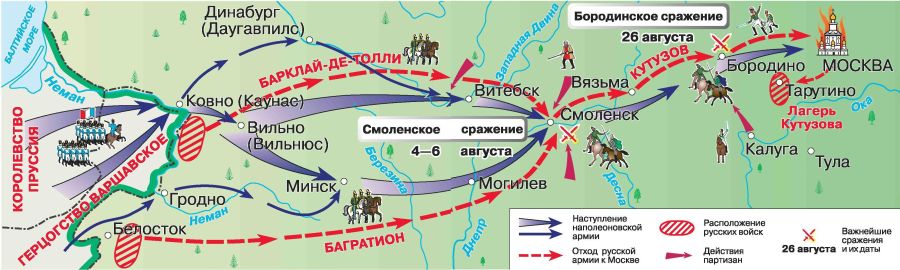 26 августа 1812 года недалеко от Москвы, у деревни Бородино, русская армия под командованием Михаила Илларионовича Кутузова дала сражение французам. Весь день гремела пушечная канонада над полем, атаки кавалерии сменяли одна другую, всё новые и новые пехотные полки шли в атаку. Обе армии несли огромные потери, но победа не склонялась ни на одну, ни на другую сторону. К концу дня армии остались на своих позициях.