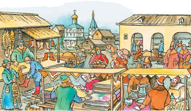 В XVII веке в России устраивалось много ярмарок. Мастера выставляли на них свои изделия на продажу. Много разных товаров можно было купить на ярмарке: и местного производства, и привезённых купцами из других стран. Ярмарки стали любимым местом развлечения горожан. На них устраивали кукольные представления, различные игры.