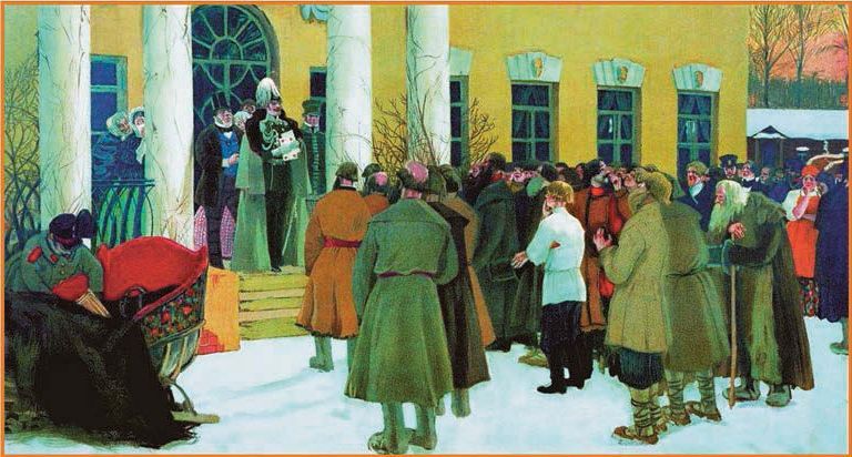 Б. Кустодиев. Чтение манифеста. Фрагмент