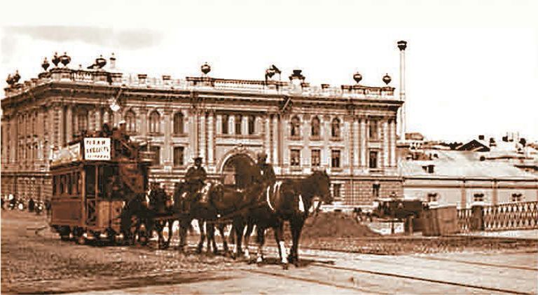 На улицах больших городов можно было увидеть новый транспорт. По рельсам, проложенным по улицам, покатились деревянные домики на колёсах. Их везли лошади, а места для пассажиров были как внутри вагона, так и на его крыше. Этот транспорт назывался конка.