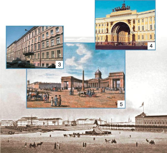 3 – доходный дом, 4 – Арка Главного штаба, 5 – Казанский собор