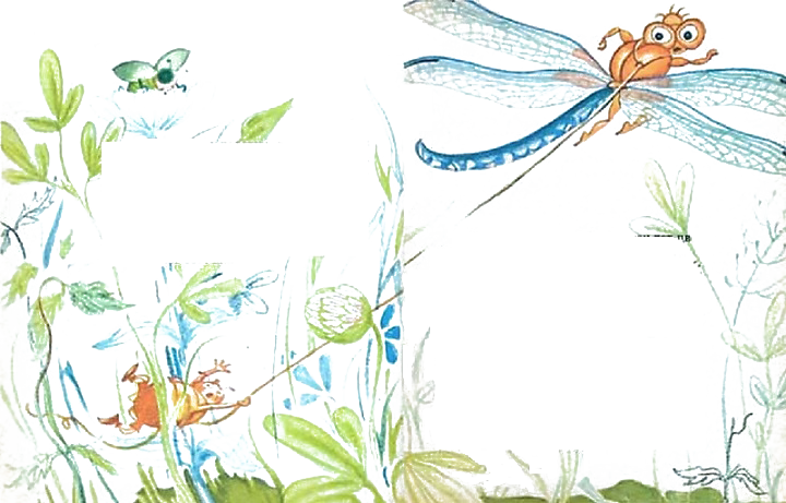 — Попробуйте управлять сами! — предложил Ферда и передал Берушке вожжи. Берушка немного боялась, но, увидев, что кузнечик покорно подчиняется, успокоилась и только весело щелкала кнутом.