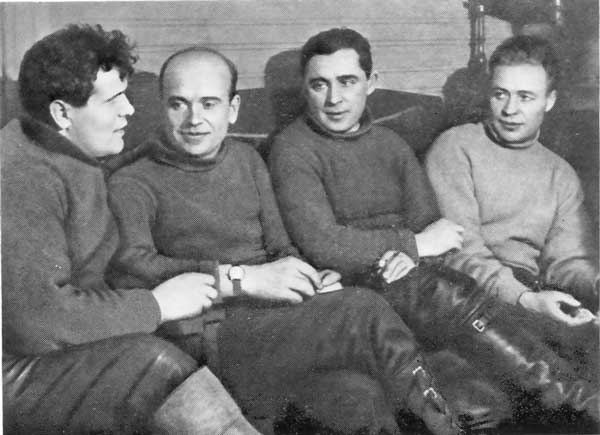 На должности командиров кораблей Полюсной экспедиции Главсевморпути пригласил испытанных асов Арктики. Интереснейшие трудовые биографии были у ветеранов Михаила Васильевича Водопьянова и Василия Сергеевича Молокова, участвовавших в спасении челюскинцев, и у недавнего рекордсмена-планериста Павла Георгиевича Головина, и у бывалого пилота дальневосточных воздушных линий Ильи Павловича Мазурука. А вот самый маститый по арктическому стажу (с 1928 года) А. Д. Алексеев был вместе с тем и самым молодым по налету часов в пилотской должности.