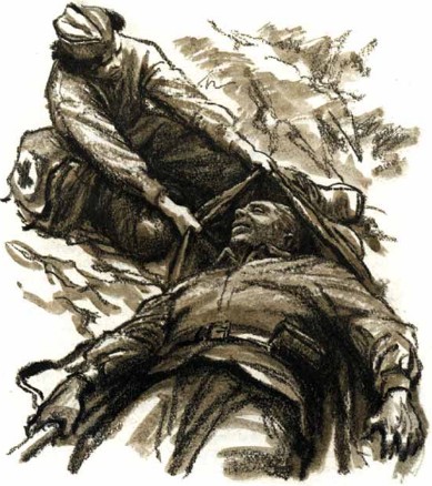 Пришел в себя он уже много часов спустя на левой стороне Дона в медсанбате. Он лежал на носилках и первое, что почувствовал, — острый запах лекарств, спирта, а затем увидел низкий зеленый купол просторной палатки, людей в белых халатах, мягко двигающихся по застланному брезентом земляному полу.