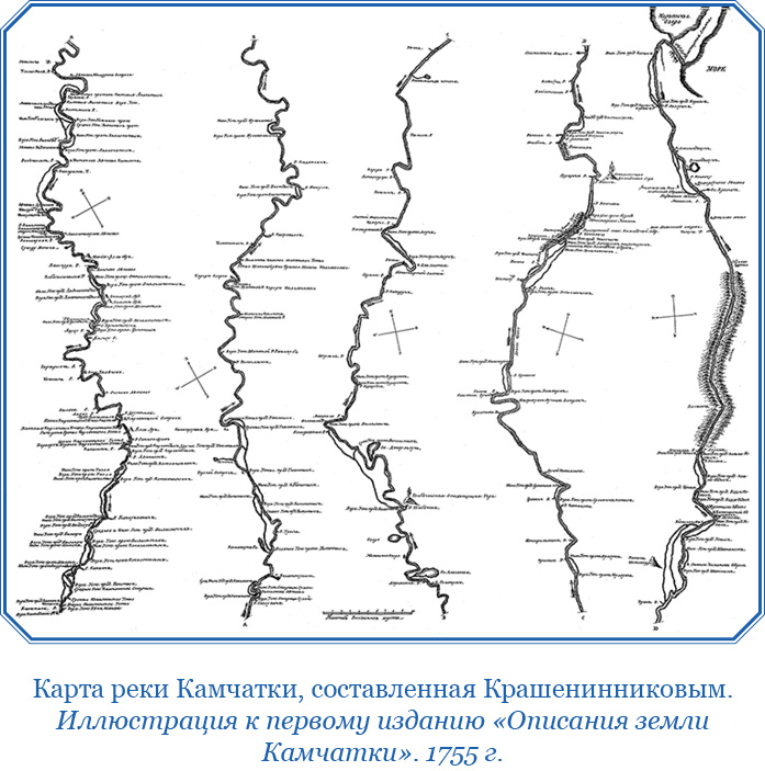 Но как всякого дела начало несовершенно, так и первые об ней известия недостаточны и неисправны были, что однако ж некоторым образом награждено от двух бывших в те места экспедиций, а наипаче от последней, ибо при том случае морскою командою не токмо описаны берега вкруг Камчатки с восточной стороны до Чукотского носа, а с западной до Пенжинской губы и от Охотского до реки Амура, но исследовано и положение островов между Япониею и Камчаткою, и между Камчаткою ж и Америкою.