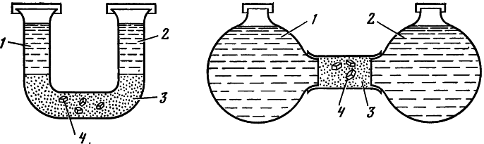 Рис. 14. Кристаллизаторы для выращивания кристаллов флюорита методом встречной диффузии реагентов