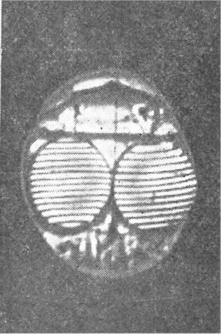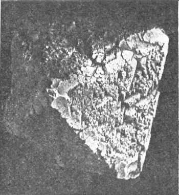 Фото 1. Винтовая дислокация в кристалле флюорита, декорированная CaO. По Р. Хейману [1979]