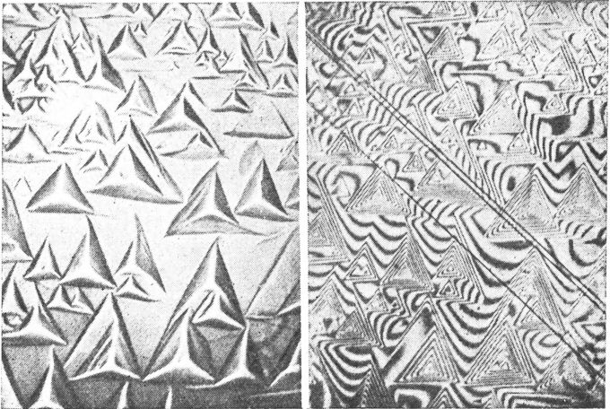 Фото 2. Блочность природного (а) и искусственного (б) кристалла флюорита