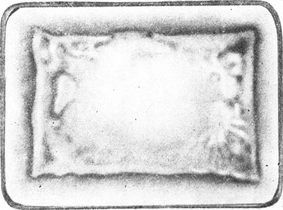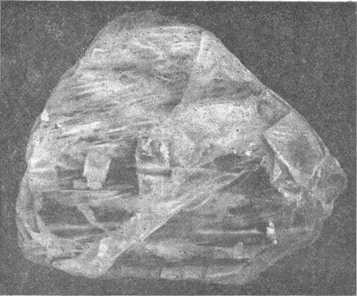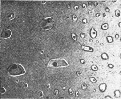 Фото 10. Крупные полости (пузыри) в искусственном кристалле флюорита, выращенном в форме пластинки. Нат. вел.
