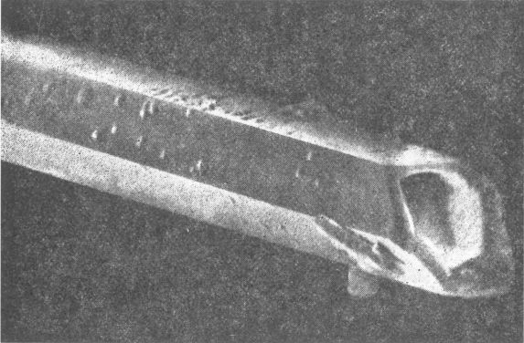 Фото 17. Нитевидный кристалл флюорита [Desai, John, 1978]