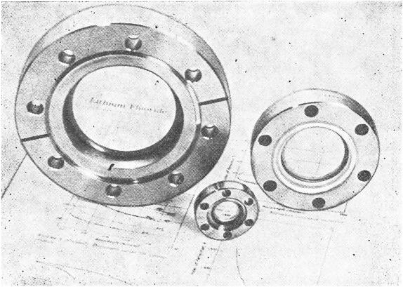 Фото 20. Флюоритовые окна, смонтированные на стандартных вакуумных фланцах (производство фирмы «Харшау», США)