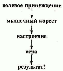 Вначале принимаем «мышечный корсет», т. е. выпрямляем спину, расправляем плечи и растягиваем рот до ушей. Другими словами, сознательно создаем осанку и мимику ПОБЕДИТЕЛЯ.