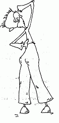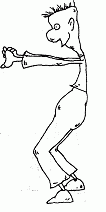 Ноги на ширине плеч, полусогнуты в коленях, таз – вперед, верхняя часть туловища неподвижна.