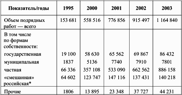 Объем строительных работ, выполненных организациями различных форм собственности (в фактически действовавших ценах; в млн р.; 1995 г. – в млрд р.)