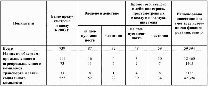 Количество объектов строительства, финансируемых из федерального бюджета, введенных в эксплуатацию в 2003 г. [2]