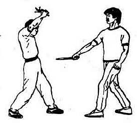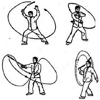 Техника применения включает маховые удары большой амплитуды и разнообразные вращения для создания вокруг себя «мертвой зоны». Следует подчеркнуть, что психологический эффект от применения этого оружия очень велик.