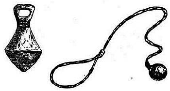 КИСТЕНЬ.(По фене кистень называют «набалдашник», «гайка», «гирька»). Традиционный кистень, это небольшой металлический шар (а чаще гирька неправильной формы) на узком ремешке длиной от 30 до 100 см. Другой конец ремешка заканчивается петлей. Ремешок нередко заменяют капроновым или нейлоновым шнуром.