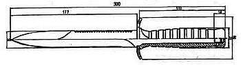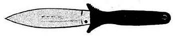 Его широкий клинок из нержавеющей стали имеет изогнутые наружу лезвия. Поэтому великолепно режет обеими своими сторонами. Он относительно короток, но хорошо колет, легко входя в тело противника по самую рукоятку и оставляя в нем широкую колото-резаную рану, Рукоятка из синтетического материала имеет четко выраженное сужение в области гарды, что облегчает работу кистевым хватом.
