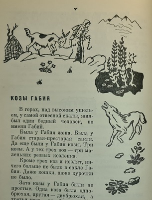 Была у Габия жена. Была у Габия старая-престарая сакля. Да еще были у Габия козы. Три козы. А у тех трех коз - три маленьких резвых козленка.