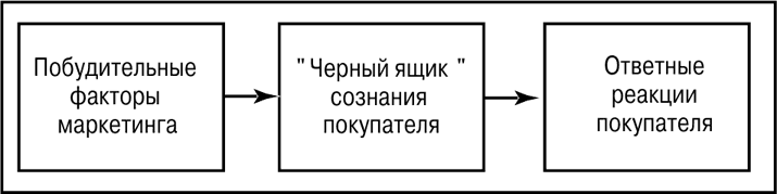 Основной вопрос: как именно реагируют потребители на разные побудительные приемы маркетинга, которые фирма может применить? Фирма, по-настоящему разобравшаяся в том, как реагируют потребители на различные характеристики товара, цены, рекламные аргументы и т. п., будет иметь огромное преимущество перед конкурентами. Именно поэтому и фирмы и научные работники тратят так много усилий на исследование зависимостей между побудительными факторами маркетинга и ответной реакцией потребителей. Отправной точкой всех этих усилий является простая модель, представленная на рис. 5.1. На нем показано, что побудительные факторы маркетинга и прочие раздражители проникают в «черный ящик» сознания покупателя и вызывают определенные отклики.