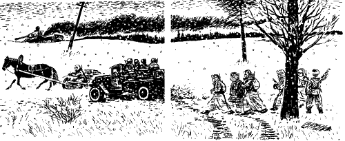 Не сдвинулся конь. Упёрся столбом. Поднялся с саней Гнедой. Видит: у самых саней торчит из-под снега мина.