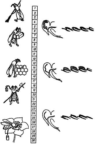 Рис. 1. Смена обязанностей на протяжении жизни пчелы.