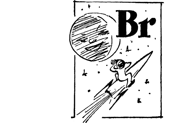О человеке, страдающем расстройством нервной системы, иногда говорят: «Он пьет бром» или: «Врачи прописали ему бром». Этому невозможно верить! Бром пить нельзя. В чистом виде бром — очень ядовитая, темно-красная, почти бурая, тяжелая (плотность 3,1) жидкость, которая даже при обычной температуре быстро испаряется на воздухе. Пары брома имеют оранжево-бурый цвет, обладают специфическим удушающе едким запахом, сильно раздражающим слизистые оболочки. За запах бром получил и свое название от греческого слова «бромос», что значит «вонь»,