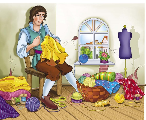 В одно прекрасное летнее утро у своего окна сидел портняжка. Он был молод, весел и работал изо всех сил.