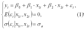 Данная модель называется моделью линейной парной регрессии и содержит три неизвестных параметра: