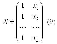 (14) – матрица коэффициентов, зависящих только от выборочных значений (9) предопределенной переменной хi.