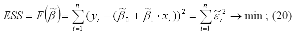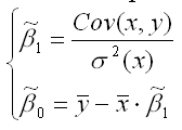 Метод наименьших квадратов позволяет получить такие оценки параметров 0 и 1, при которых сумма квадратов отклонений фактических значений результативного признака y от расчетных (теоретических) минимальна: