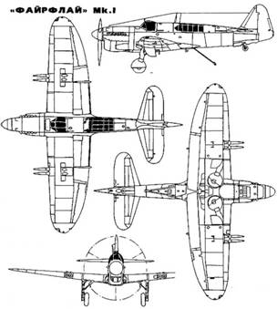 «Си Харрикейн» MkIC - палубный пушечный истребитель (4 20-мм пушки Бритиш Испано) с двигателем Роллс-Ройс «Мерлин» III (1030 л. с).