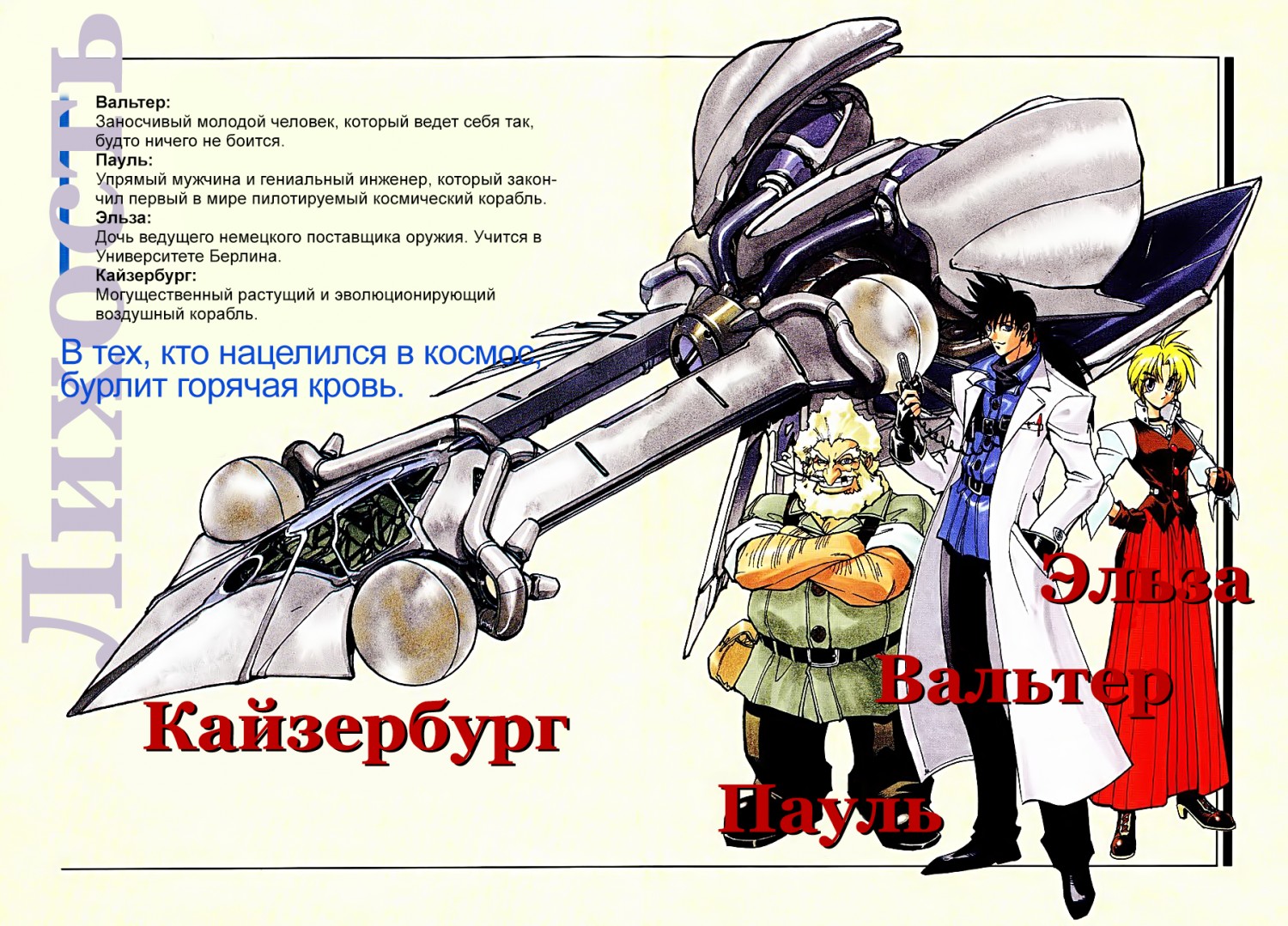 Его зовут Вальтер и он из тех нахальных юнцов, которых в этом мире не пугает ничего. Вместе со своим упрямым механиком Паулем они создают сверхъестественный летающий корабль Кайзербург, способный покинуть атмосферу, но в результате оказываются в рядах немецкой армии. Армия положила глаз на несравненную мощь Кайзербурга!