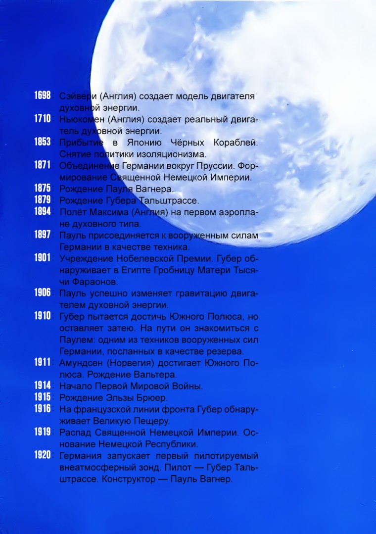 Это произошло около шестидесяти лет назад, во время Первой Мировой Войны. То был час без полновесных двигателей гравитационных эмблем, которые мы имеем сегодня, час, когда природа луны была ещё не выяснена.